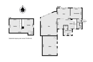 Ældre hus, der er moderniseret i 2016. Indrettet med entre med trappe til tagetagen. 2 store stuer, hvor der i det ene er opsat skillevæg til værelse. I den anden stue er der en pejs.